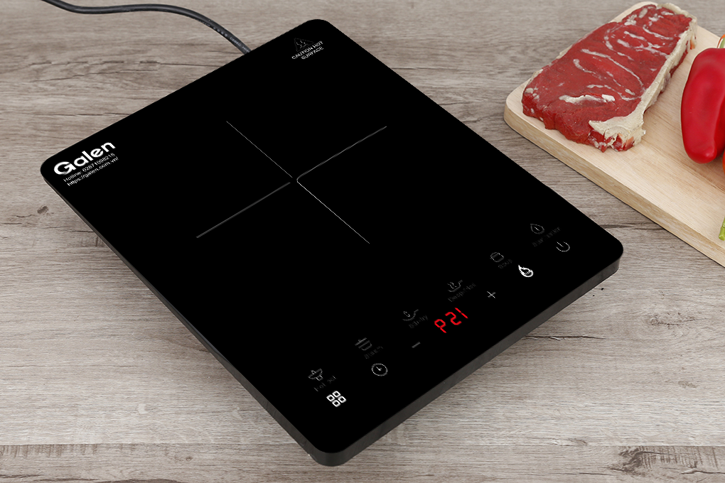 - Bếp điện từ Galen được cấu tạo với chất liệu mặt bếp siêu cường lực, có khả năng tự ngắt điện khi nhiệt độ bếp quá cao hoặc khi không có nồi đặt trên bếp