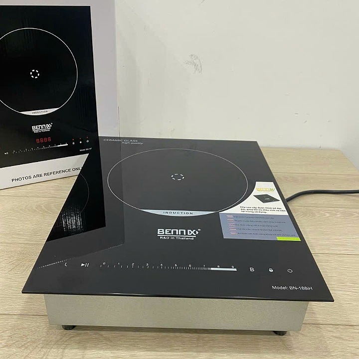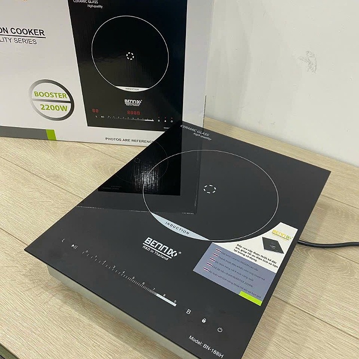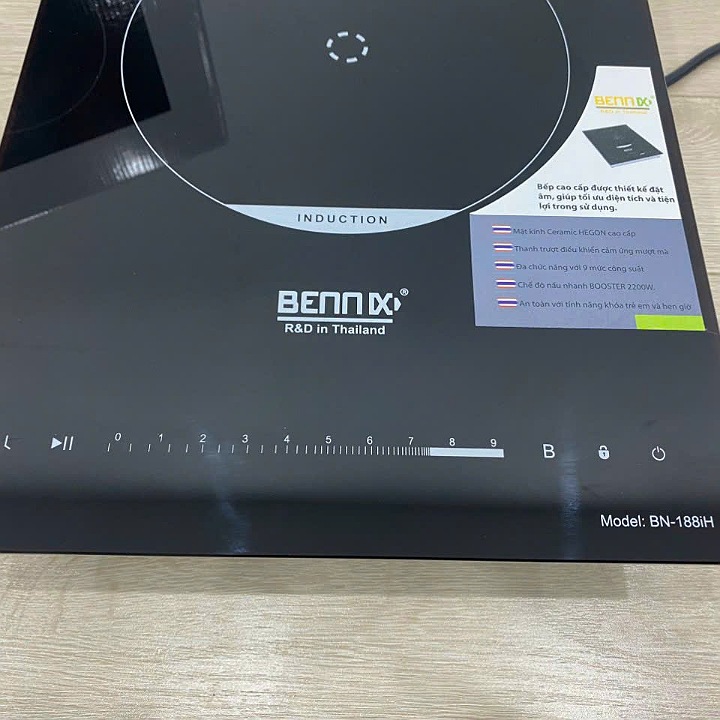 Bếp Từ Đơn Bennix Thiết Kế Tinh Xảo, Mặt Bếp Ceramic Bền Đẹp, Sáng Bóng, Dễ Vệ Sinh, Công Suất 2200W Đa Dang Chức Năng Nấu, Điều Khiển Cảm Ứng Hiện Đại, Dễ Quan Sát Và Thao TácƯu điểm nổi bật của bếp điện từ đơn Bennix Bennix là mẫu bếp từ đơn rất được ưa chuộng, đến từ thương hiệu của Thái Lan, áp dụng dây chuyền sản xuất hiện đại của Đức đảm bảo độ bền. Bếp từ sở hữu màu đen tuyền sạch sẽ, bề mặt bếp bằng kính ceramic có khả năng chịu nhiệt độ cao, chịu lực tốt, dễ lau chùi vệ sinh bằng khăn ẩm. Bếp từ Bennix trang bị công suất 2200W giúp nấu ăn nhanh chóng. Với chiếc bếp từ này bạn có thể nấu canh, đun nước, xào rau, chiên thực phẩm, hầm, kho cá đều rất tiện lợi. Khung bếp từ Bennix thiết kế chắc chắn, có 4 chân đế giúp kê bếp được cao hơn, tản nhiệt tốt hơn. Mặt dưới của bếp từ có trang bị thêm quạt tản nhiệt để làm mát cho động cơ, giúp bếp từ hoạt động được liên tục trong thời gian dài, tránh quá tải nhiệt, đồng thời góp phần làm tăng độ bền cho sản phẩm. Bảng điều khiển bằng phím cảm ứng thao tác nhanh nhạy, sử dụng tiết kiệm điện, có tính năng hẹn giờ tắt bếp, khóa trẻ em, tăng giảm nhiệt độ khi nấu dễ dàng.