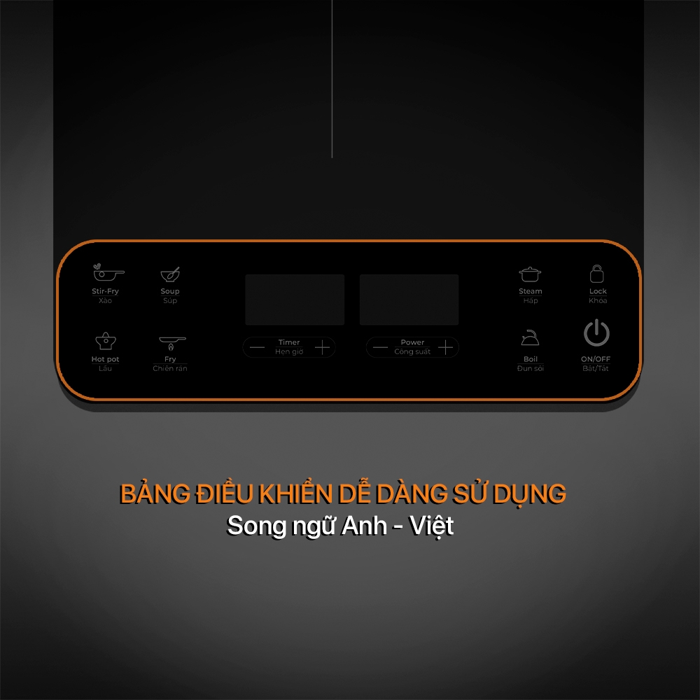 Mặt kính cường lực chịu nhiệt cao, chống xước Màn hình LED hiển thị công suất và nhiệt độ Điều khiển cảm ứng 10 mức gia nhiệt Hẹn giờ 0 -24 giờ Chức năng tự