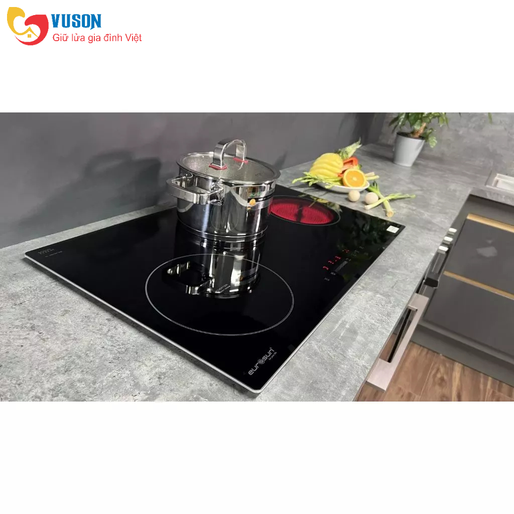 Bếp điện từ Eurosun EU-TE887G Bếp điện từ Eurosun EU-TE887G là sự kết hợp độc đáo của bếp từ và bếp hồng ngoại đáp ứng nhu cầu nấu nướng đa dạng của gia đình. Vùng nấu từ