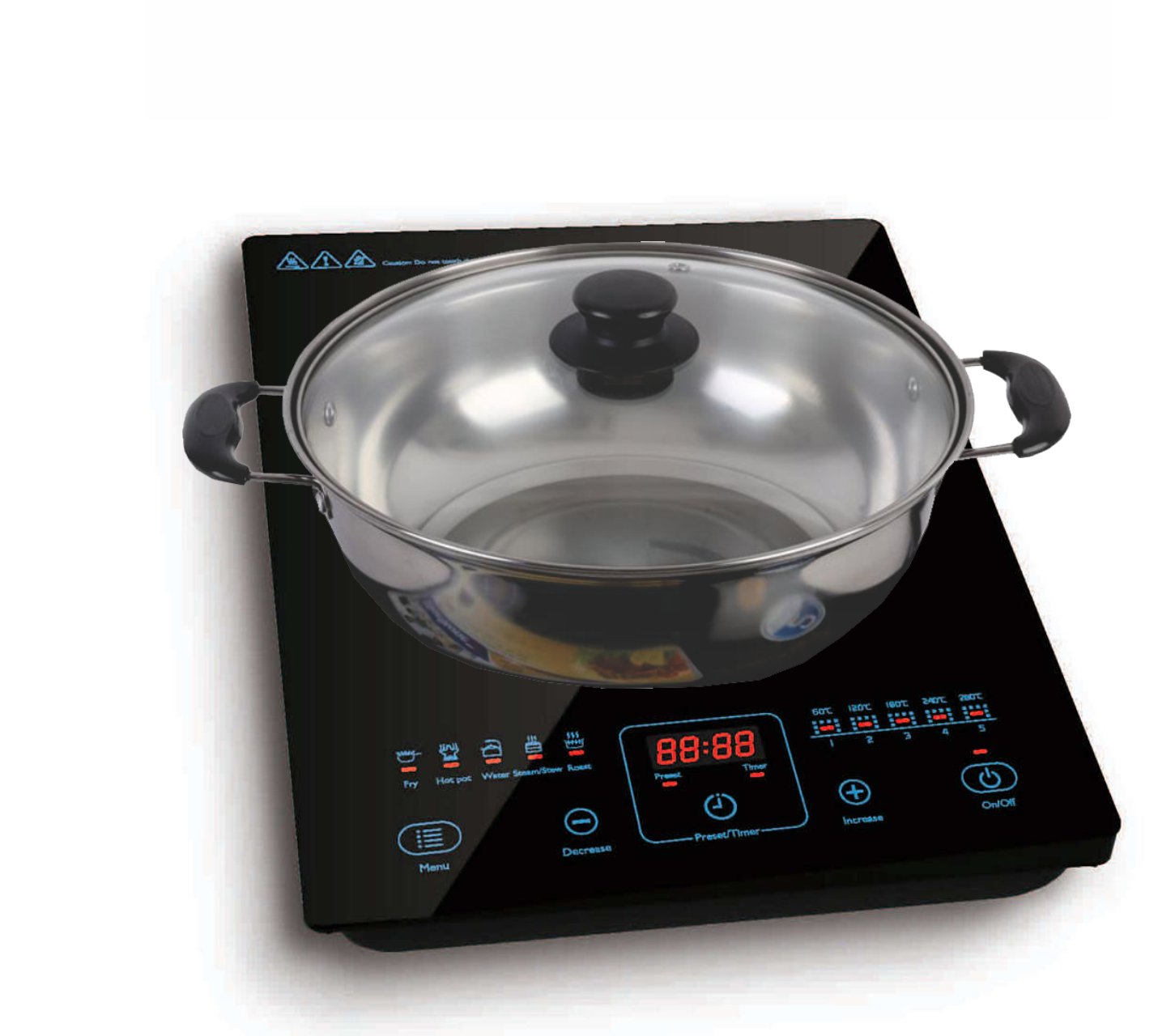 Bảng điều khiển cảm ứng dễ sử dụngBảng điều khiển cảm ứng rất nhạy được minh họa sinh động, sử dụng dễ dàng với thao tác chạm tay nhẹ nhàng. 5 chế độ nấu tự động: chiên, lẩu, đun nước, hấp và súp làm cho bữa ăn phong phú và nhiều món hơn.