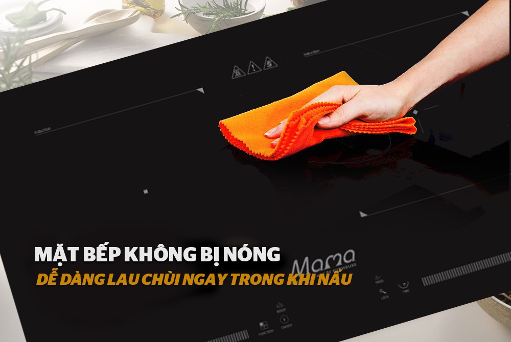 MMB9201DIH với cơ chế truyền nhiệt điện từ giúp cho mặt bếp không bị nóng, dễ dàng lau chùi ngay cả trong và sau khi nấu nướng. Đồng thời giúp mặt kính bền bỉ, không bị biến dạng do bị ảnh hưởng bởi sự giãn nở nhiệt.