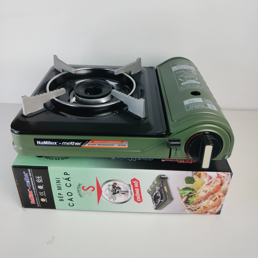 Bếp ga namilux sử dụng thép không gỉ phủ lớp sơn tĩnh điện chống cháy làm cho bếp bền hơn, không bị hoen rỉ, khó bám bẩn, dễ vệ sinh.