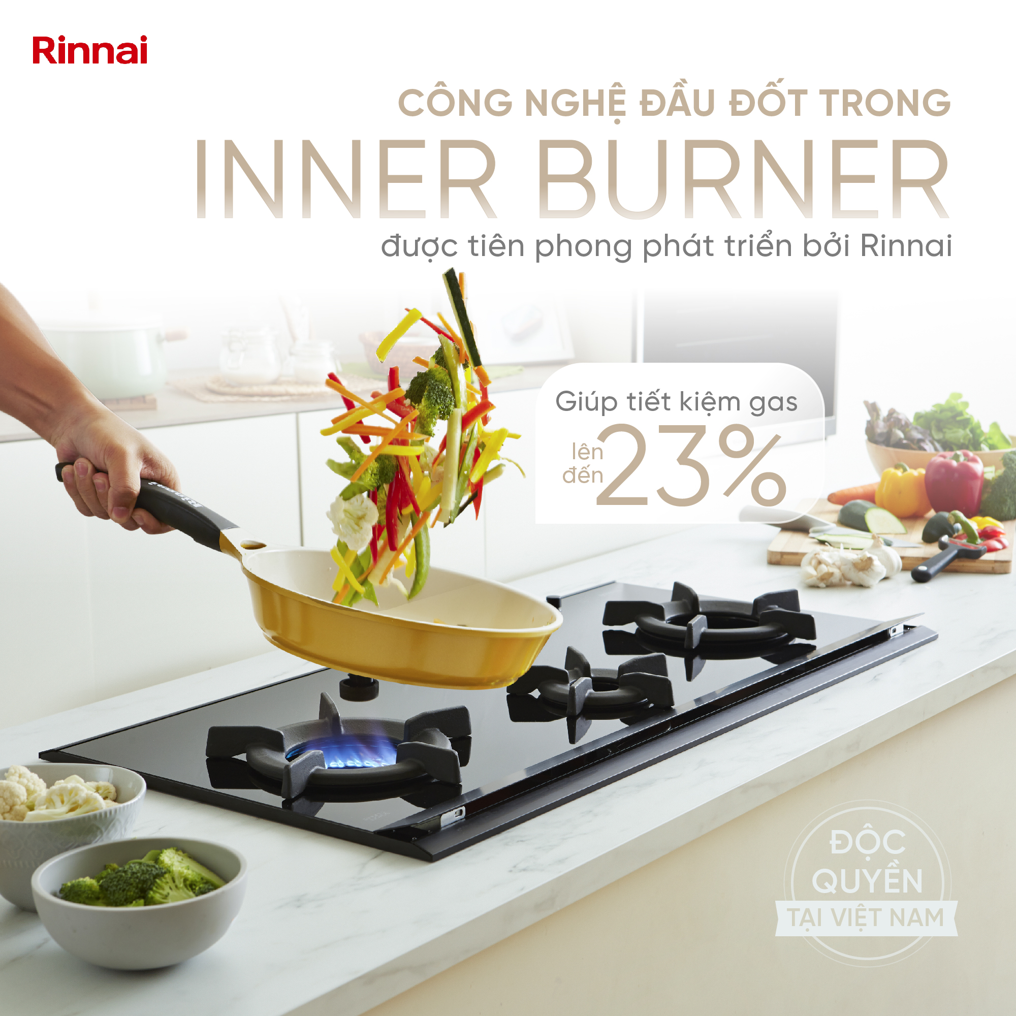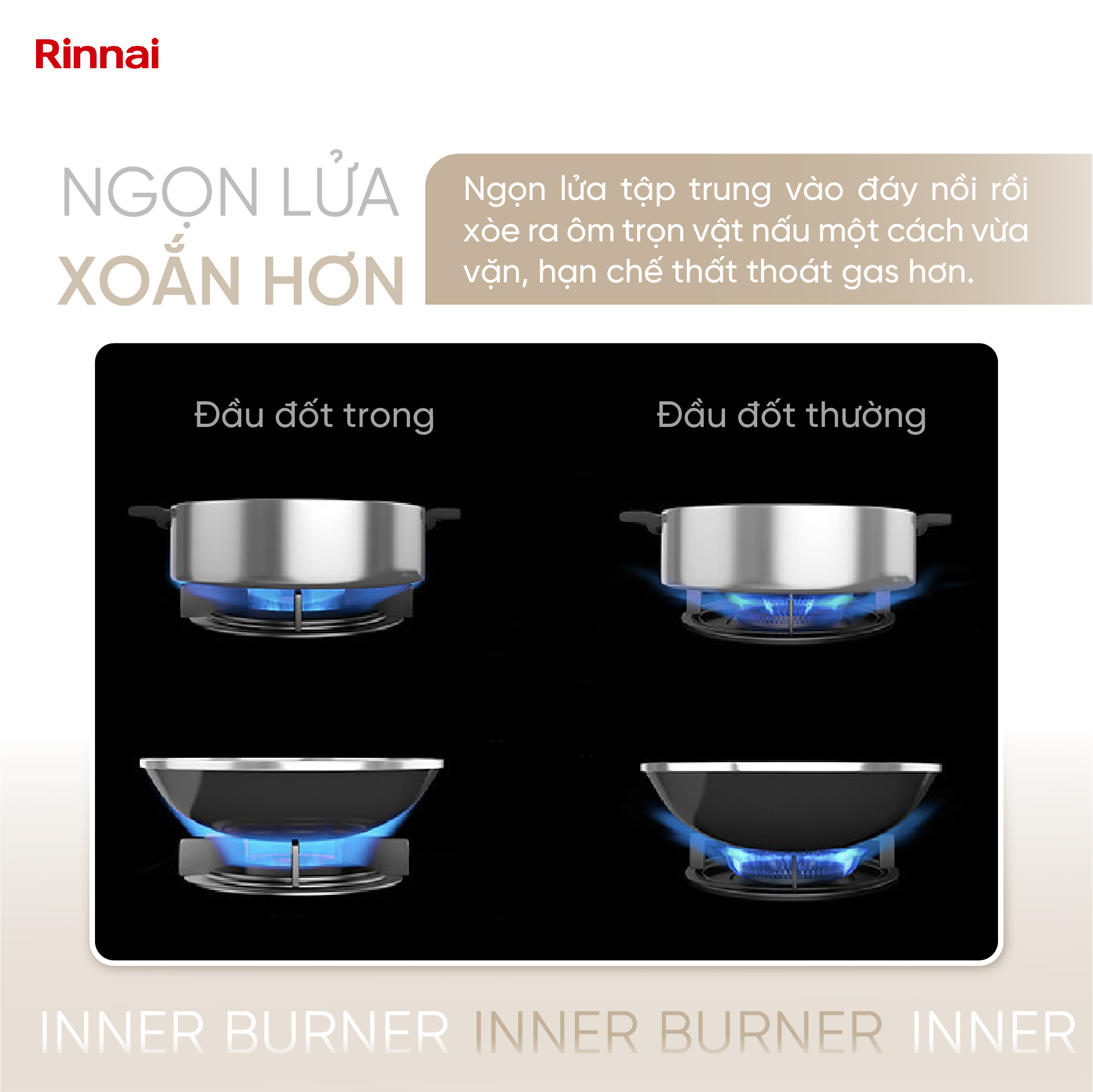 RINNAI chân thành cảm ơn bạn đã quan tâm đến sản phẩm: Bếp gas âm đầu đốt trong Rinnai RVB-2Gi(B) mặt bếp kính và kiềng bếp men - Hàng chính hãng