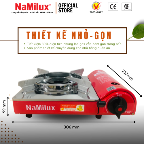 Bếp gas du lịch mini Namilux PM1811AS được thiết kế nhỏ gọn, kiểu dáng sang trọng, đẹp mắt. Để phục vụ cho nhu cầu ngày càng cao của người tiêu dùng, hãng Namilux luôn cải