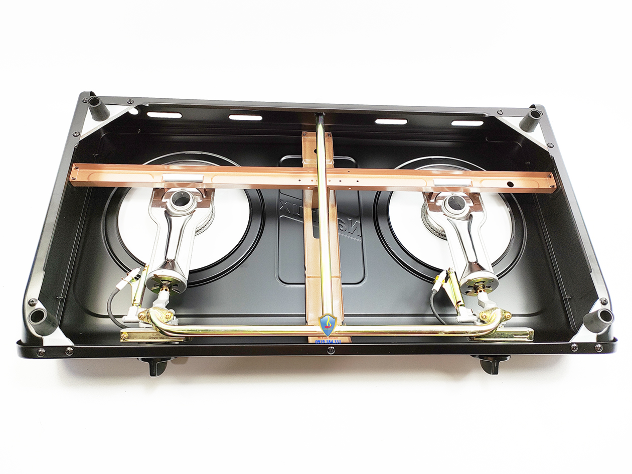 * Mặt kiếng cao cấp chịu lực, chịu nhiệt, thiết kế hoa văn sang trọng; - Thân bếp bằng inox, cao 100 mm; - Kiềng thép sơn tĩnh điện, có chắn gió; - Điếu loe