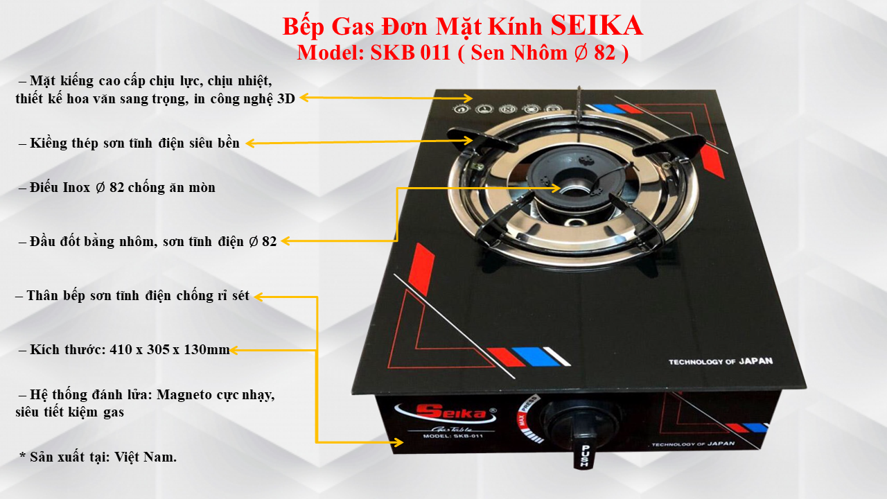 ✨Bếp Gas Đơn Mặt Kính Seika SKB011 - Hàng Chính Hãng