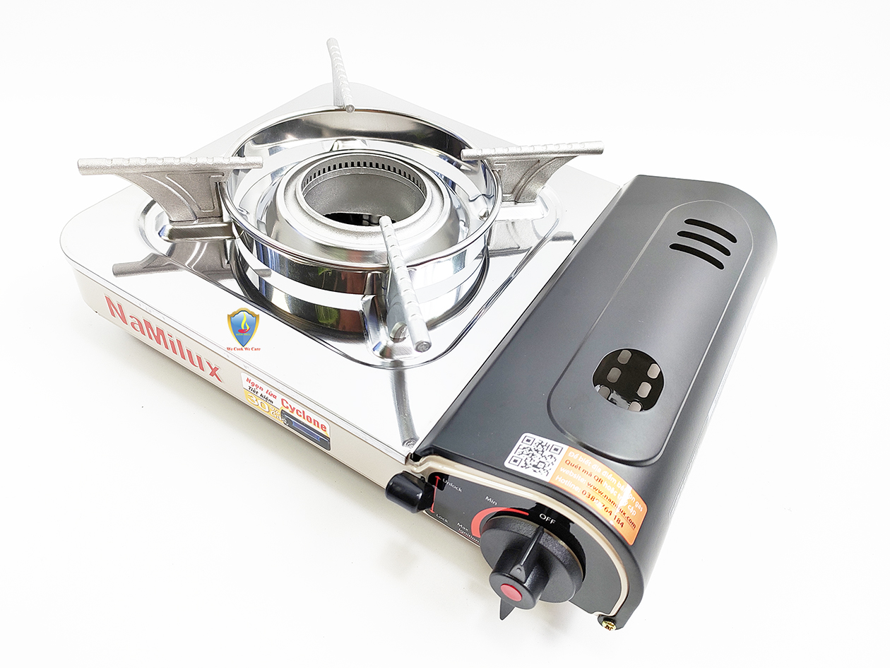 Bếp du lịch sử dụng van ngắt gas an toàn tự động Inline Cut. Bếp sử dụng hệ thống đầu đốt theo tiêu chuẩn JIA (Nhật Bản), kết hợp vòng chắn gió, giúp ngọn lửa