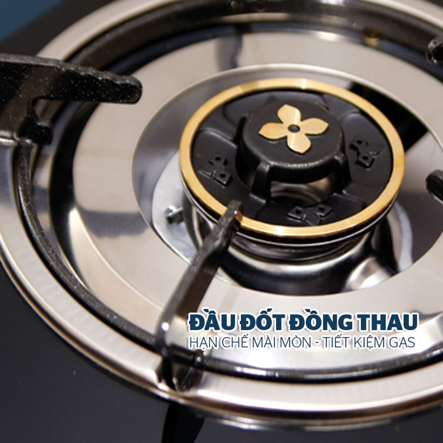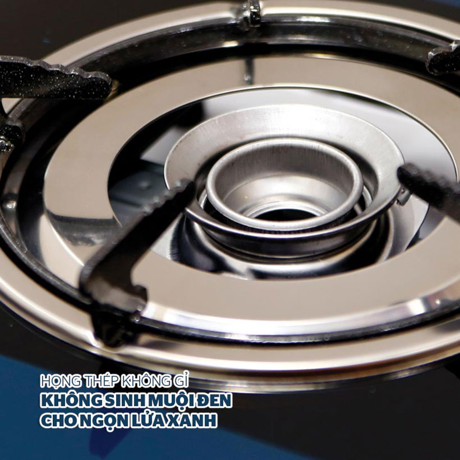 Được làm từ đồng thau chống bào mòn sử dụng lâu dài, đầu đốt sẽ không bị biến dạng dù cho việc sử dụng dưới nhiệt độ cao trong một khoảng thời gian dài khi ninh, hầm,… Họng bếp bằng thép không gỉ, không sinh ra muội đen, cho ngọn lửa xanh không đen đáy nồi, tiết kiệm nhiên liệu và an toàn khi sử dụng.