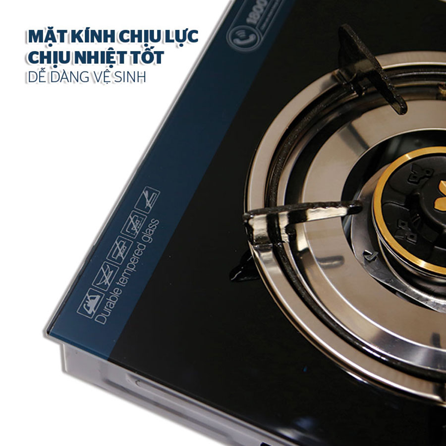 Mặt kính được làm từ kính thủy tinh chịu lực, chịu nhiệt tốt. Chất liệu này hạn chế tối đa tình trạng nứt, vỡ bề mặt khi có tác động từ bên ngoài. Đồng thời, mặt kính hạn chế chống xước và bám dính thực phẩm, sau khi đun nấu chỉ cần lấy khăn ẩm nhẹ nhàng lau là mặt bếp lại sáng bóng như mới.