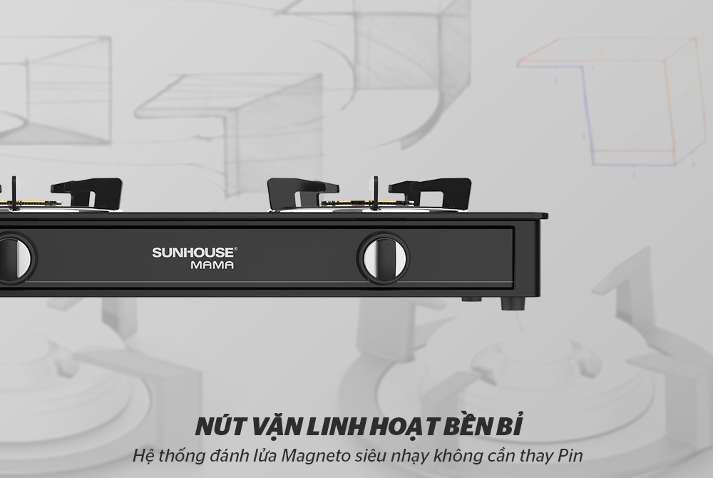 Bếp gas dương kính SUNHOUSE MAMA MMB0910 sử dụng hệ thống đánh lửa Magneto (còn được gọi là hệ thống đánh lửa cơ), hoạt động dựa trên nguyên lí sử dụng 2 đá lửa đập vào nhau tạo ra ngọn lửa đều và xanh. Hệ thống đánh lửa Magneto điều khiển bằng núm vặn linh hoạt, bền bỉ, ít hỏng hóc, không cần thay pin như ở hệ thống IC.