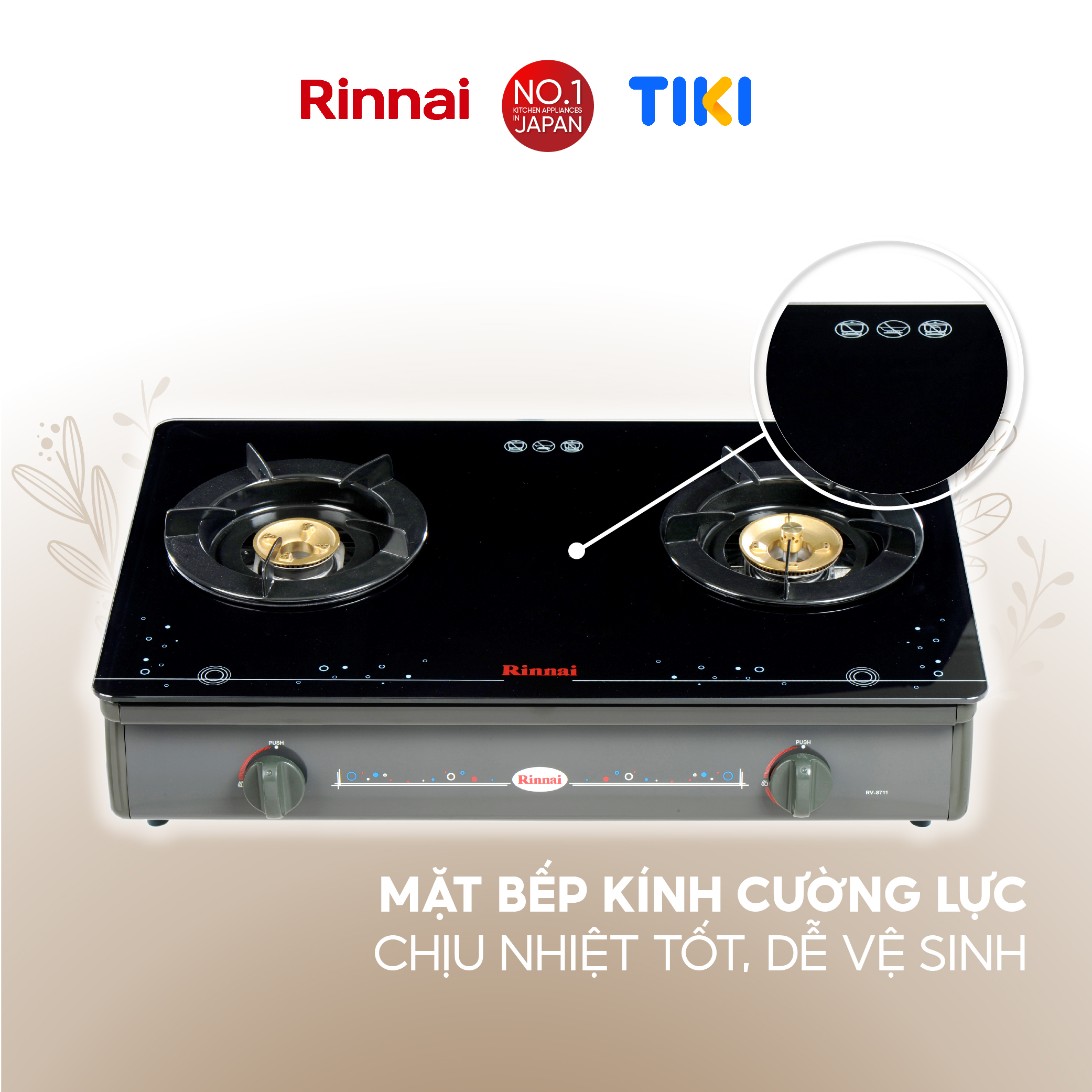 RINNAI chân thành cảm ơn bạn đã quan tâm đến sản phẩm: Bếp gas dương Rinnai RV-8711(GL-Sp) mặt bếp kính và kiềng bếp men - Hàng chính hãng.