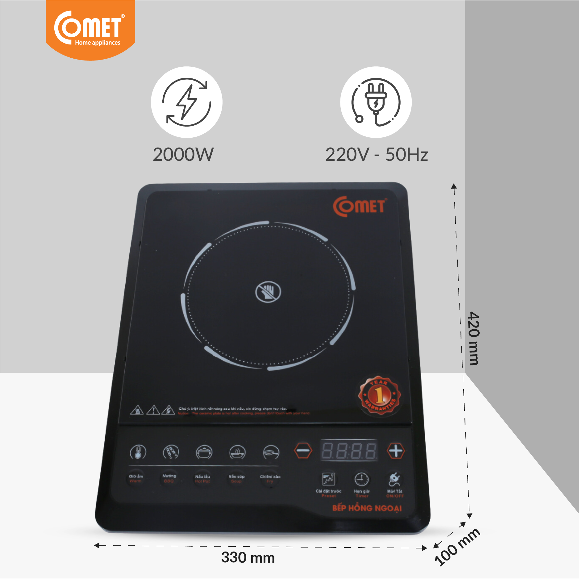 ✨Bếp hồng ngoại Comet CM5517 – công suất 2000W, mặt kính chịu lực, đa chế độ nấu – Hàng chính hãng, bảo hành 12 tháng