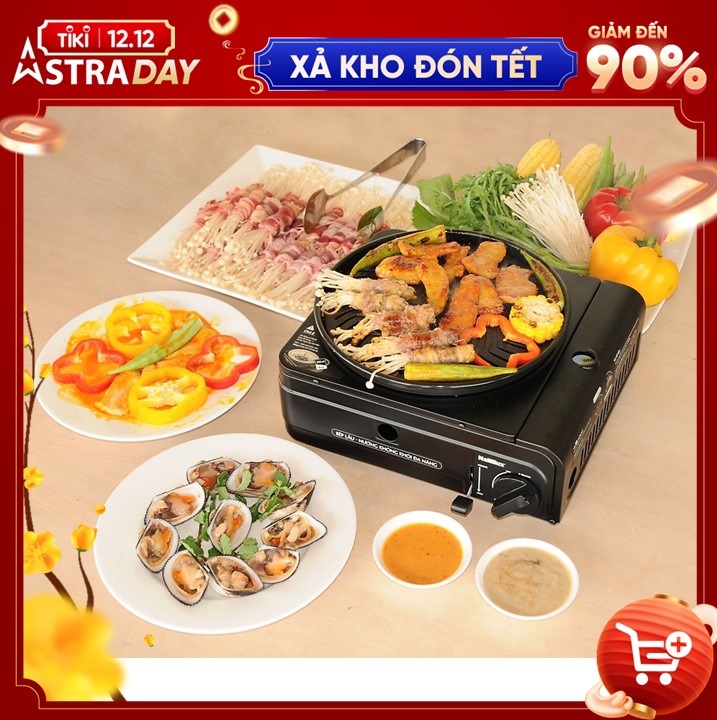 Mua tại TiktokTHÔNG SỐ KỸ THUẬT Tên: Bếp nướng không khói đă năng Namilux GS2621PF Sử dụng gas: Lon gas Namilux mới Công suất: 1.2kW (1000kcal/h) Trọng lượng tịnh: 2.05Kg Kích thước bếp: 134x306x284mm (CxDxR) Sản xuất: Việt Nam ĐẶC ĐIỂM NỔI BẬT CHỐNG GIÓ SIÊU VIỆT: Đầu đốt được thiết kế nằm hoàn toàn bên trong bếp, nên có thể sử dụng được ngay cả ngoài trời hay những nơi có gió mạnh như vùng biển. SIÊU TIẾT KIỆM: Tối ưu hiệu suất đốt và tận dụng toàn bộ nhiệt lượng tỏa ra trong quá trình nấu (1 Lon gas mini mới nguyên có thể sử dụng được liên tục từ 3-5 giờ). NƯỚNG KHÔNG KHÉT: