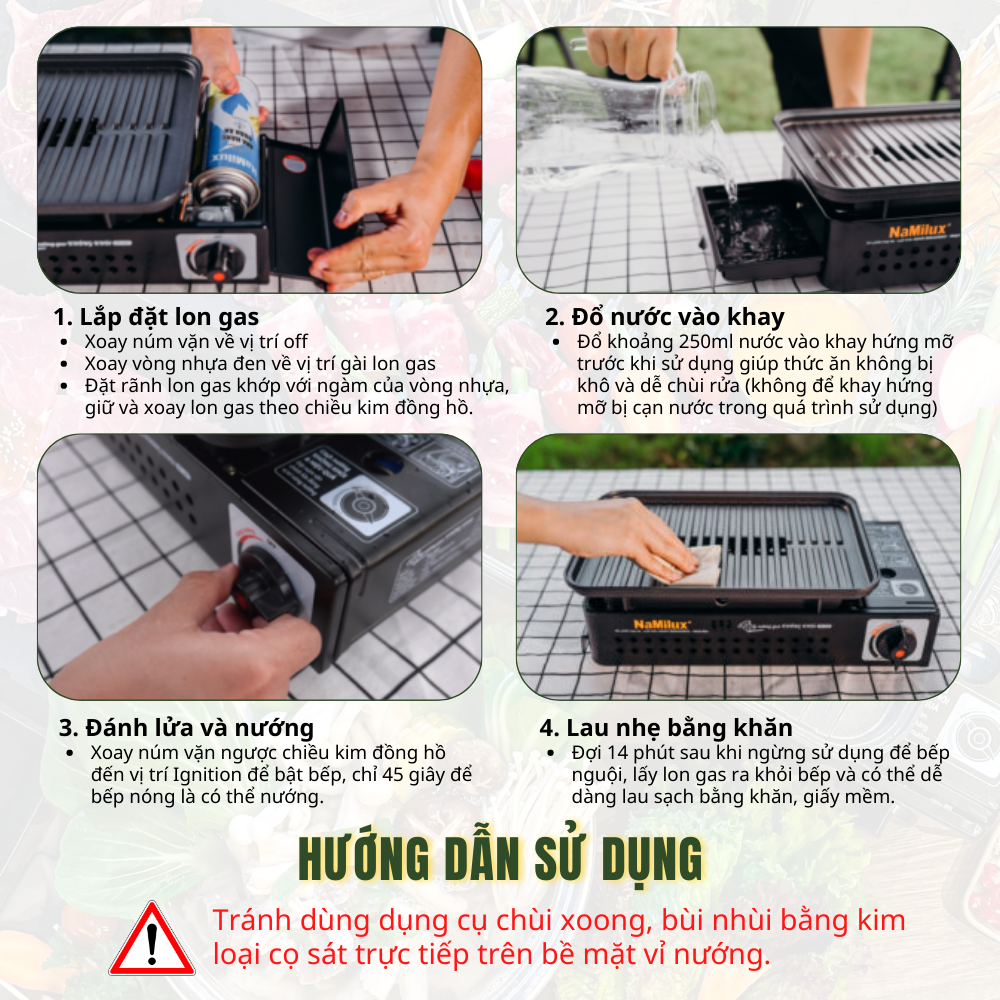Với khả năng tích trữ nhiệt lượng siêu tốt và nướng đa dạng các loại thực phẩm, kèm hộp nhựa dễ dàng di chuyển, sử dụng ở mọi lúc, mọi nơi. Bếp nướng gas tích nhiệt NaMilux NH-84F làlựa chọn hoàn hảo cho bạn