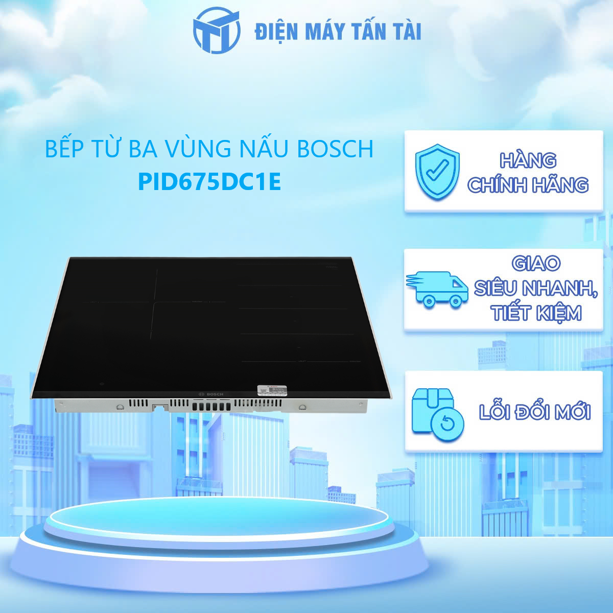 Bếp Từ Bosch PID675DC1E. Bếp từ Bosch PID675DC1E nấu nhanh, sạch sẽ và an toàn là thiết bị công nghệ thân thiện với người dùng và môi trường. Bosch PID675DC1E thuộc dòng bếp từ cao