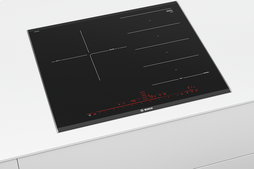 Bếp từ Bosch PXE631FC1Esử dụng mặt gốm thủy tinh schott ceran-made in Germany truyền nhiệt tốt, chịu được nhiệt độ cao lên đến 700ºC Với tính năng Flexi-zine trên bếp từ Bosch PXE631FC1E giúp bạn