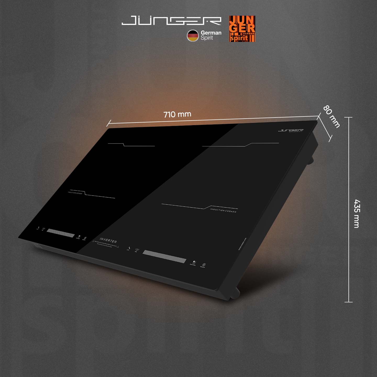 Bếp từ đôi Junger màu đen với thiết kế có thể lắp đặt âm hoặc để nổi, tiết kiệm diện tích căn bếp, tiện lợi cho việc chế biến món ăn Có 4 chân đế cao su cách điện cách nhiệt, tránh trường hợp trơn trượt, cố định vị trí bếp trong quá trình nấu nướng khi bếp được đặt nổi. Bếp từ đôi Junger MK-22 Chất liệu mặt bếp kính Ceramic - Junger Đức cao cấp, chịu nhiệt, chịu được va đập mạnh, chống trầy xước, dễ vệ sinh