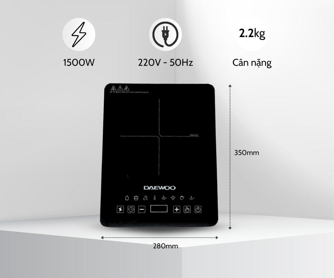 • Bếp từ chính hãng Daewoo: Đảm bảo chất lượng cao, bền bỉ, an toàn và hiệu suất ổn định.