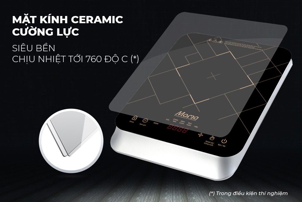 * Mặt kính ceramic chịu nhiệt       * Mâm từ đường kính 20cm        * Chức năng hẹn giờ, chế độ xào rán.       * Điều khiển công suất / nhiệt độ       * Bàn phím