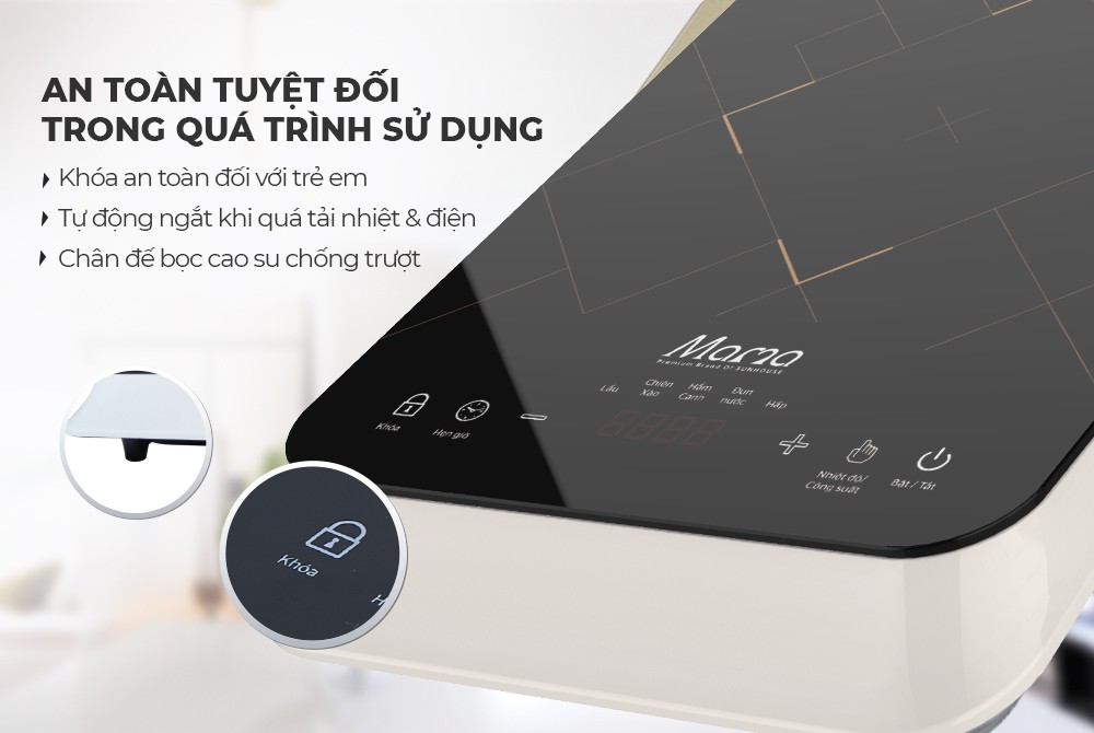 Ngoài ra, bếp trang bị thiết bị bảo vệ khi dòng điện bị quá tải. Khi nồi quá nóng, bếp sẽ tự động tắt, còi báo. Bạn chỉ cần chờ vài phút để bếp nguội sau đó bật bếp lên và sử dụng bình thường.