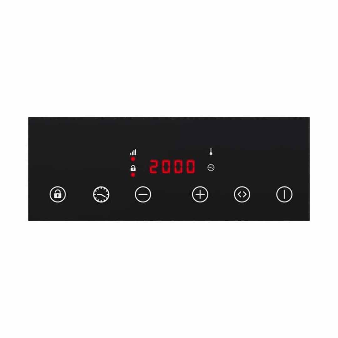 Bếp kính âm 2 từ 1 điện Kích thước: 780×450mm Kích thước âm tủ: 750×420mm Tổng công suất: 5000W Booster:3000W Các tính năng an toàn của bếp: Mặt kính SCHOTT Ceran Bảng điều khiển cảm