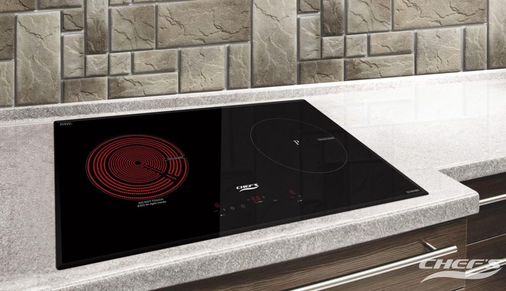 - Bếp Hỗn Hợp 02 Vùng Nấu Chef's EH-MIX330 sử dụng đa năng với bếp hỗn hợp EH-MIX330 - Mặt kính ceramic chịu nhiệt Schott Ceran vát cạnh – Germany - Mâm nhiệt EGO Hi-light,