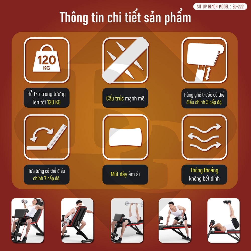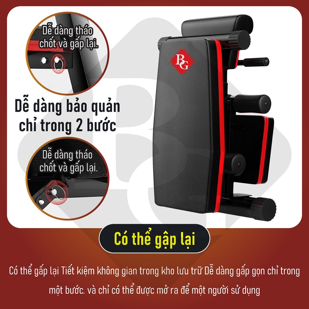 ✨BG Ghế tập tạ đa năng SU-222 ,Ghế tập thể dục đa năng - Hỗ trợ tập các bài tập tạ, cơ bụng, cơ tay gấp gọn - Chất liệu khung thép và đệm xốp bọc da PU (hàng nhập khẩu)