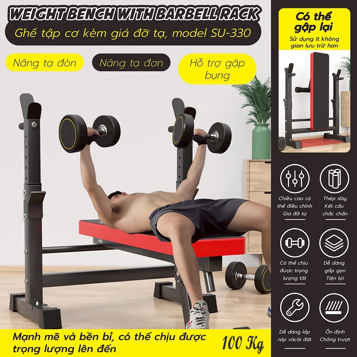✨BG Ghế Tập Tạ SU- 330 - 331 Đa Năng Kết Hợp Giá Đỡ ,Hỗ trợ tập các bài tập tạ, cơ bụng, cơ tay gấp gọn (hàng nhập khẩu)
