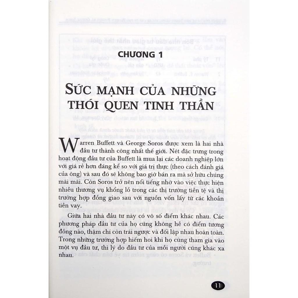 Thành công tiềm ẩn trong những thói quen và chiến lược tinh thần của bạn - tác giả Mart Tier đã khẳng định như vậy trong cuốn sách có tính chất mở đường này. Thông qua việc xác định những thói quen đưa Warren Buffett và George Soros đến với sự thành công phi thường, Mart Tier lần đầu đã chứng minh rằng tất cả các nhà đầu tư thành công đều có những thói quen đó. Và bạn có thể học hỏi và rèn luyện những thói quen này thông qua cuốn sách kinh doanh này.