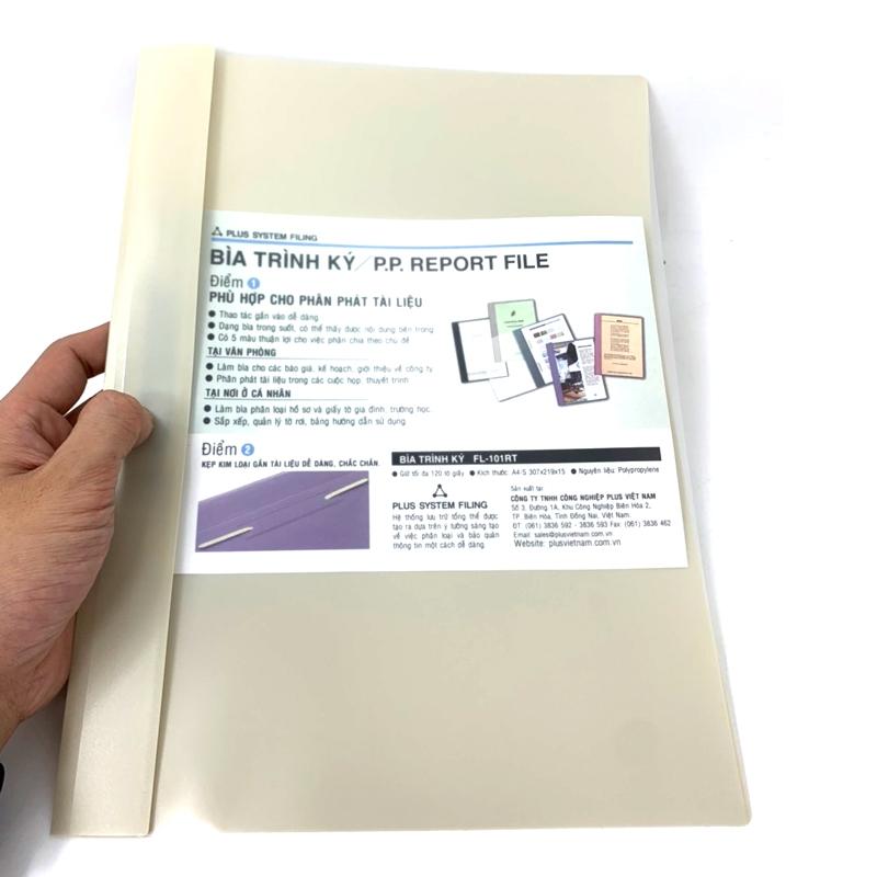 Bìa 1 Kẹp Plus Sản phẩm sử dụng phù hợp với khổ giấy A4. Sản phẩm một mặt nhựa, vỏ ngoài cứng cáp. Kẹp làm bằng inox không han gỉ, có tính đàn hồi cao, kẹp được lượng lớn
