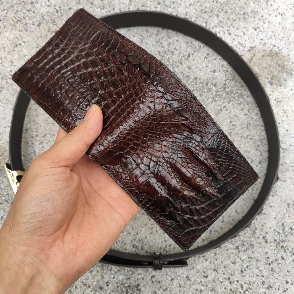 Set cá sấu nâu [Ví bàn tay + Nịt gai lưng]