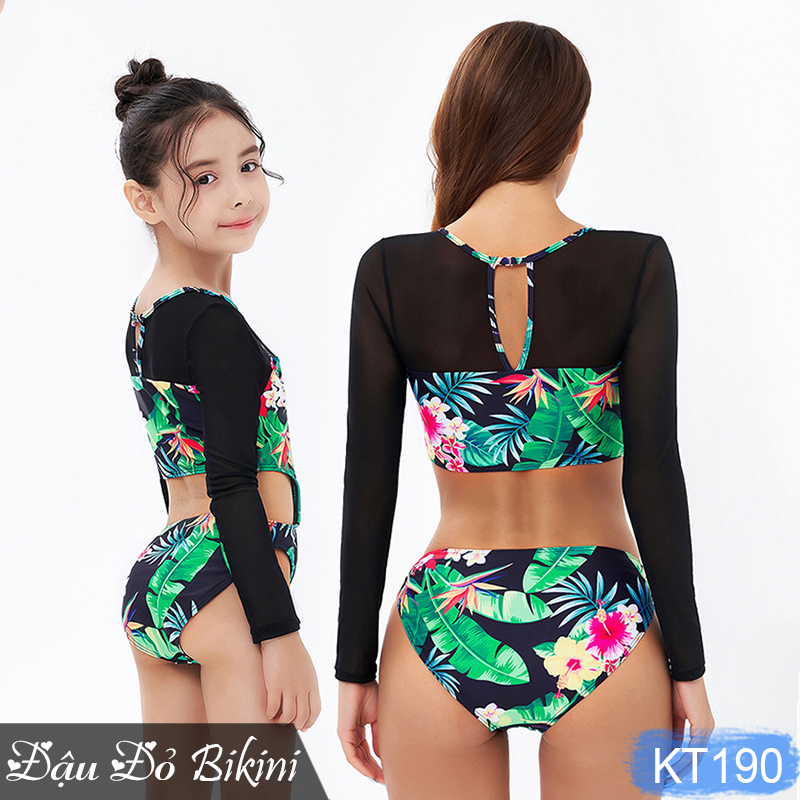 ✨Bikini đồ bơi đôi cho mẹ và bé gái, áo tắm liền thân cặp mẹ con, kiểu Âu Mỹ gợi cảm, hoạ tiết lá hoa Hawaii tươi trẻ, chất thun bơi 2 lớp dày dặn, phom đẹp | KT190