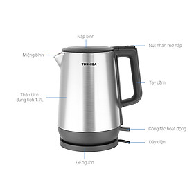 Mua tại Tiktok- Bình đun siêu tốc Toshiba màu inox sáng bóng, kiểu dáng sang trọng, dung tích 1.7 lít sử dụng thuận tiện tại gia đình, văn phò