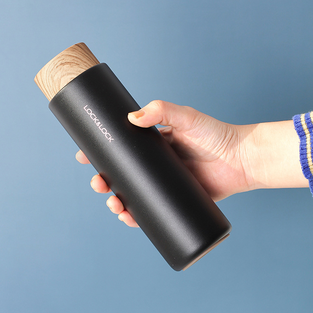 Bình giữ nhiệt Lock&Lock Flat 400ml màu đen LHC4227BLK - Hàng chính hãng, có khay lưới lọc trà, nắp nhựa kiểu gỗ - JoyMall - Bình giữ nhiệt Lock&Lock Flat nắp gỗ 400ml - LHC4227