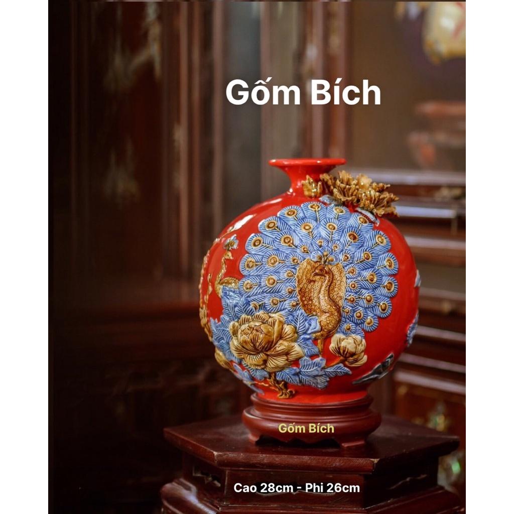 Lọ hoa gốm sứ Bát Tràng cao cấp men hoả biến kính cao 36cm Đk bụng 18cm Thích hợp cắm nhiều loại hoa Giá : 450k
