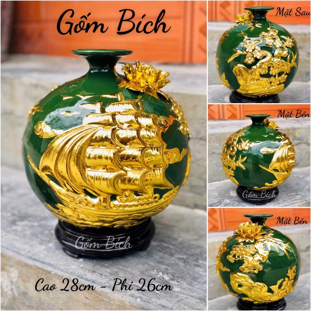 ✨Bình Hút Tài Lộc Thuận Buồm Xuôi Gió Dát Vàng Bình Phong Thủy Tài Lộc Gốm Sứ Bát Tràng - Gốm Bích