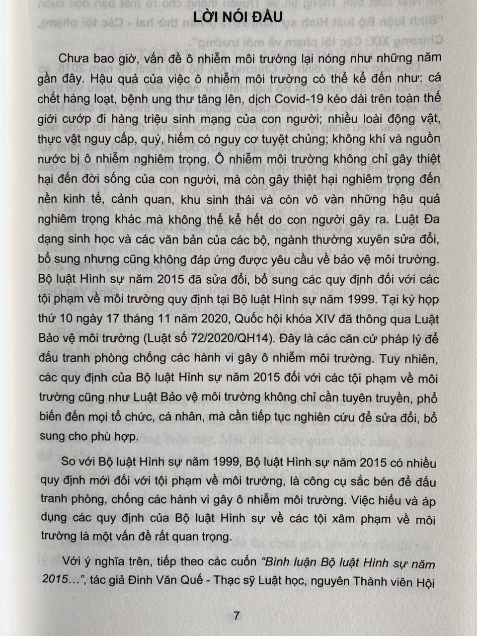 Mua tại TiktokBình Luận Bộ Luật Hình Sự Năm 2015 - Phần Các Tội Phạm Chương XIX Các Tội Phạm Về Môi Trường