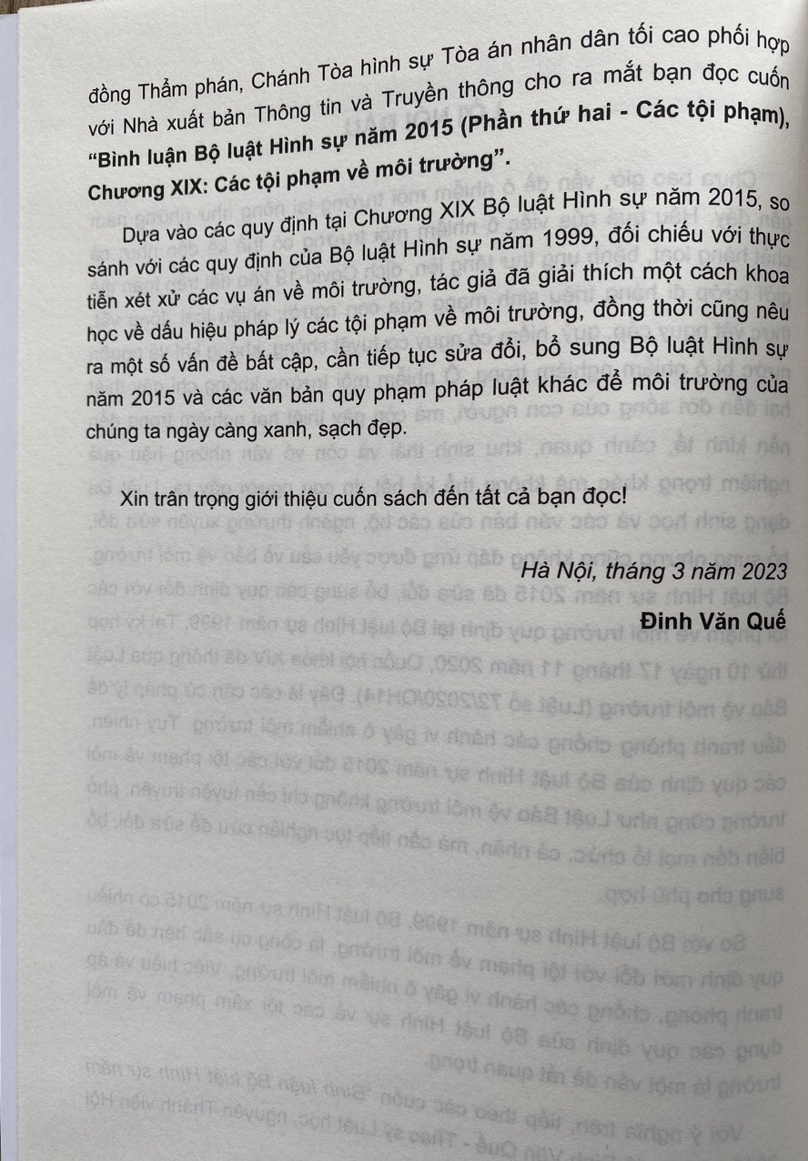 Tiếp theo cuốn “Bình luận khoa học Bộ luật Hình sự năm 2015 (Phần thứ hai - Các tội phạm) .Nhà xuất bản Thông tin và Truyền thông phối hợp với tác giả Đinh Văn
