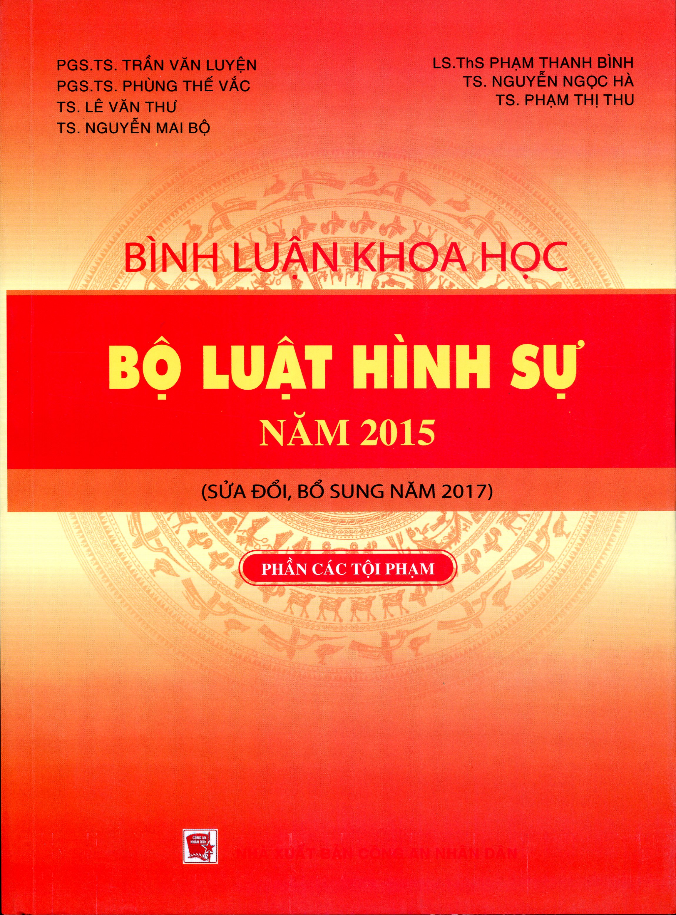 Nhà Xuất bản CAND đã kịp thời xuất bản cuốn “Bình luận khoa học Bộ luật Hình sự năm 2015 (sửa đổi, bổ sung năm 2017) – Phần các tội phạm” do nhóm tác giả gồm những nhà khoa học, cán bộ làm công tác thực tiễn, cán bộ tham gia Tổ biên tập xây dựng dự thảo các Bộ luật Hình sự năm 1985, năm 1999 và năm 2015 (sửa đổi, bổ sung năm 2017) có kinh nghiệm, trình độ trong các lĩnh vực nghiên cứu, giảng dạy, xây dựng, thi hành và áp dụng pháp luật về hình sự.
