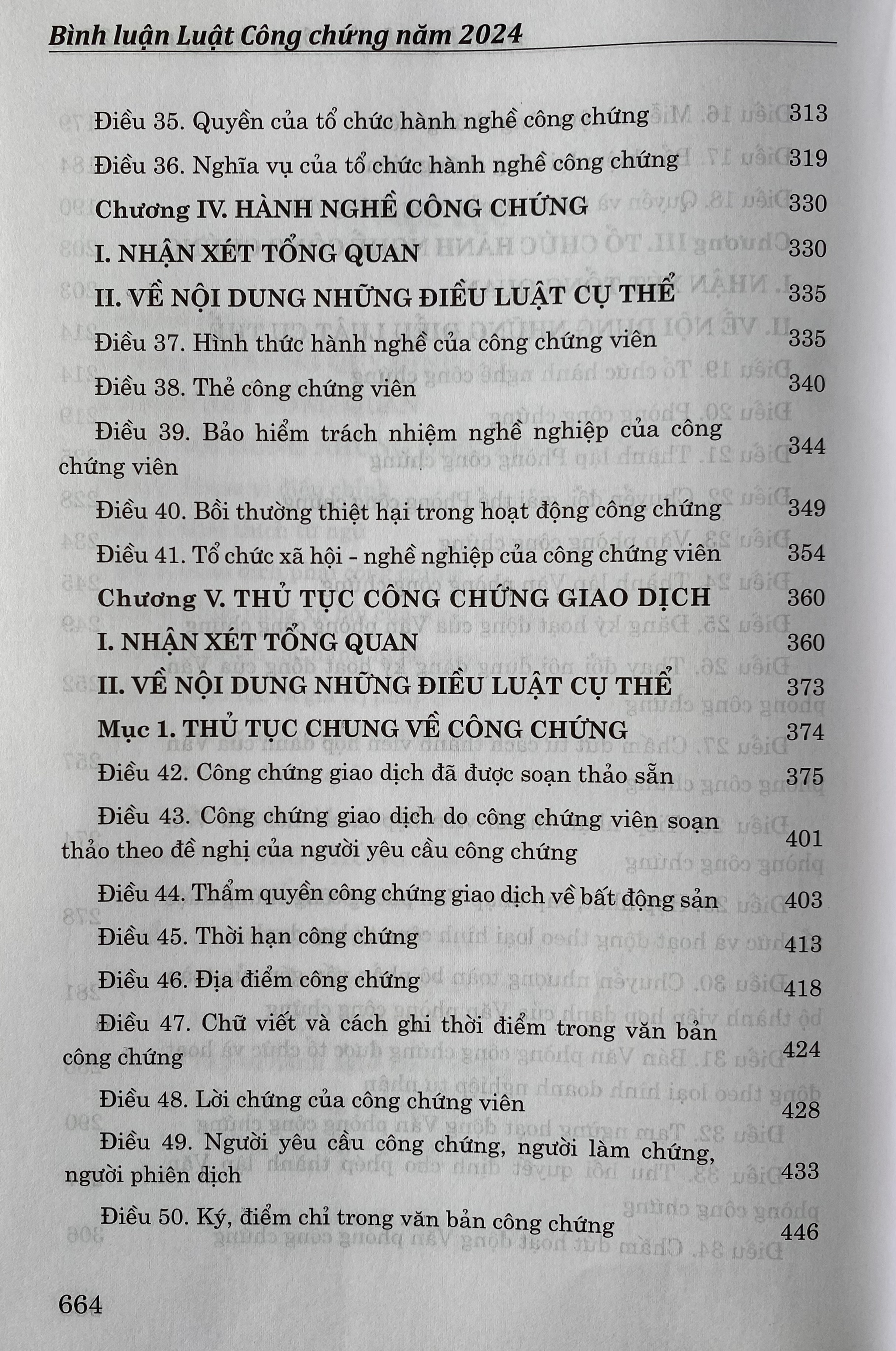 Dưới nhãn quan của công chứng viên, các tác giả đã phân tích, bình luận một số nội dung của Luật chủ yếu dựa trên kinh nghiệm hành nghề thực tế của bản thân, yêu cầu, đòi hỏi khách quan của cuộc sống được đặt trong tương quan so sánh với nội dung những văn bản quy phạm pháp luật điều chỉnh một số lĩnh vực có liên quan mật thiết đến hoạt động công chứng. Mỗi chương đều gồm hai phần: nhận xét tổng quan và bình luận từng điều luật cụ thể.