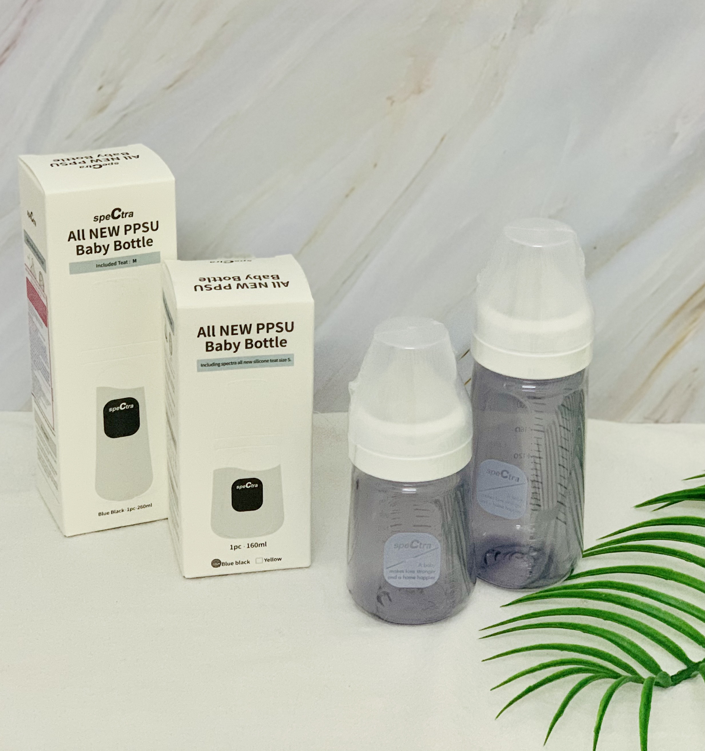 Bình sữa  PPSU Cổ Rộng Spectra Thân Bình Màu Xanh Đen - Dung Tích 160ml 260ml kèm Núm TiBình sữa  PPSU Cổ Rộng Spectra Thân Bình Màu Xanh Đen - Dung Tích 160ml 260ml kèm Núm Ti