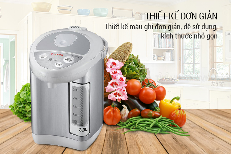 Bình thủy điện Cuckoo CWP-333G được thiết kế màu ghi đơn giản, dễ sử dụng, kích thước nhỏ gọn nên không chiếm nhiều diện tích không gian sử dụng.