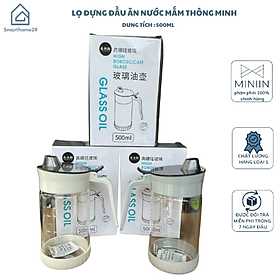 Bình Thủy Tinh Rót Dầu Ăn/Nước Mắm Có Vòi & Phễu Tích Hợp – Dung Tích 500ml – Chai Đựng Gia Vị Thông Minh, Chịu Nhiệt, Có Vạch Chia Thông Tin Chung - Dung tích: