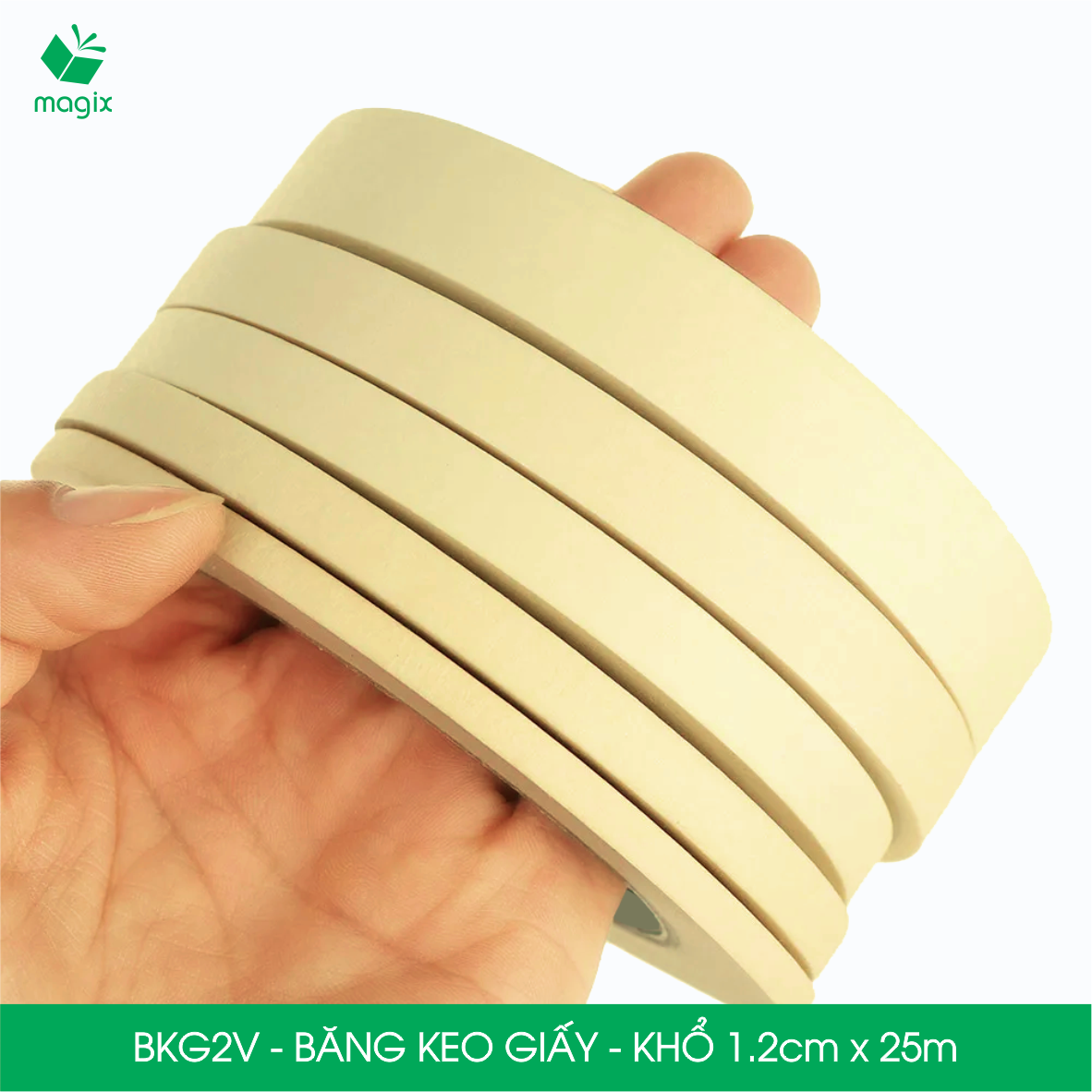 "Băng keo giấy là loại băng dính che phủ đa dụng với chất keo gốc cao su tự nhiên có độ dính vừa phải. Với đặc tính dễ sử dụng, dễ viết và không để lại vết keo khi bóc ra, băng keo giấy thường được sử dụng để dán tạm thời, đóng gói nhẹ hoặc dùng trong các hoạt động thủ công, là sản phẩm đa năng và tiện lợi dùng tại văn phòng, nhà riêng hoặc trường học.