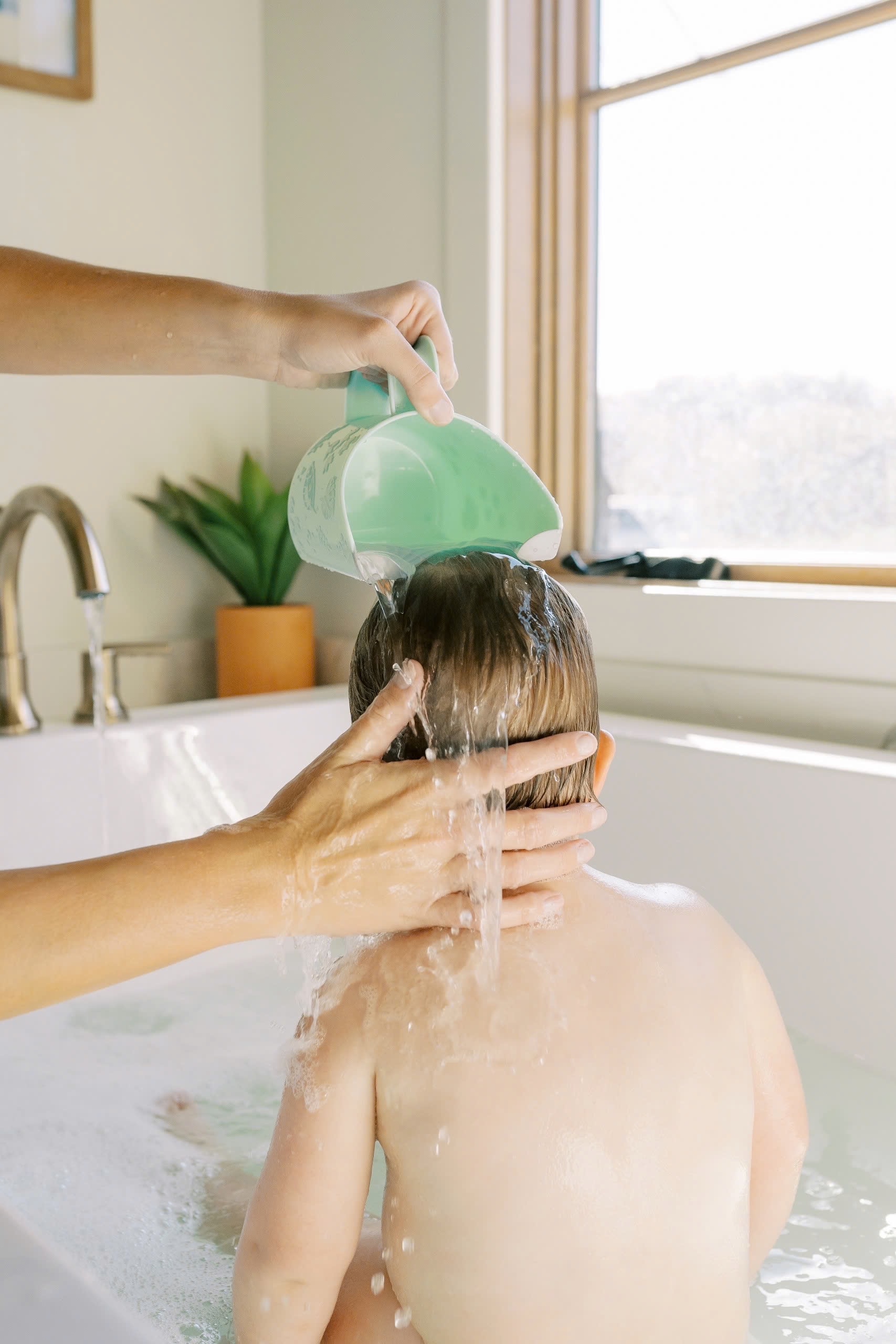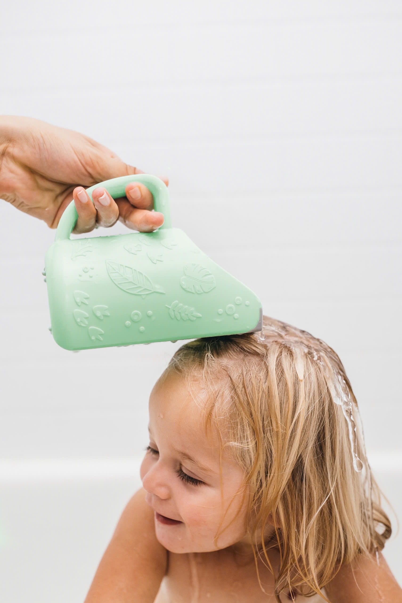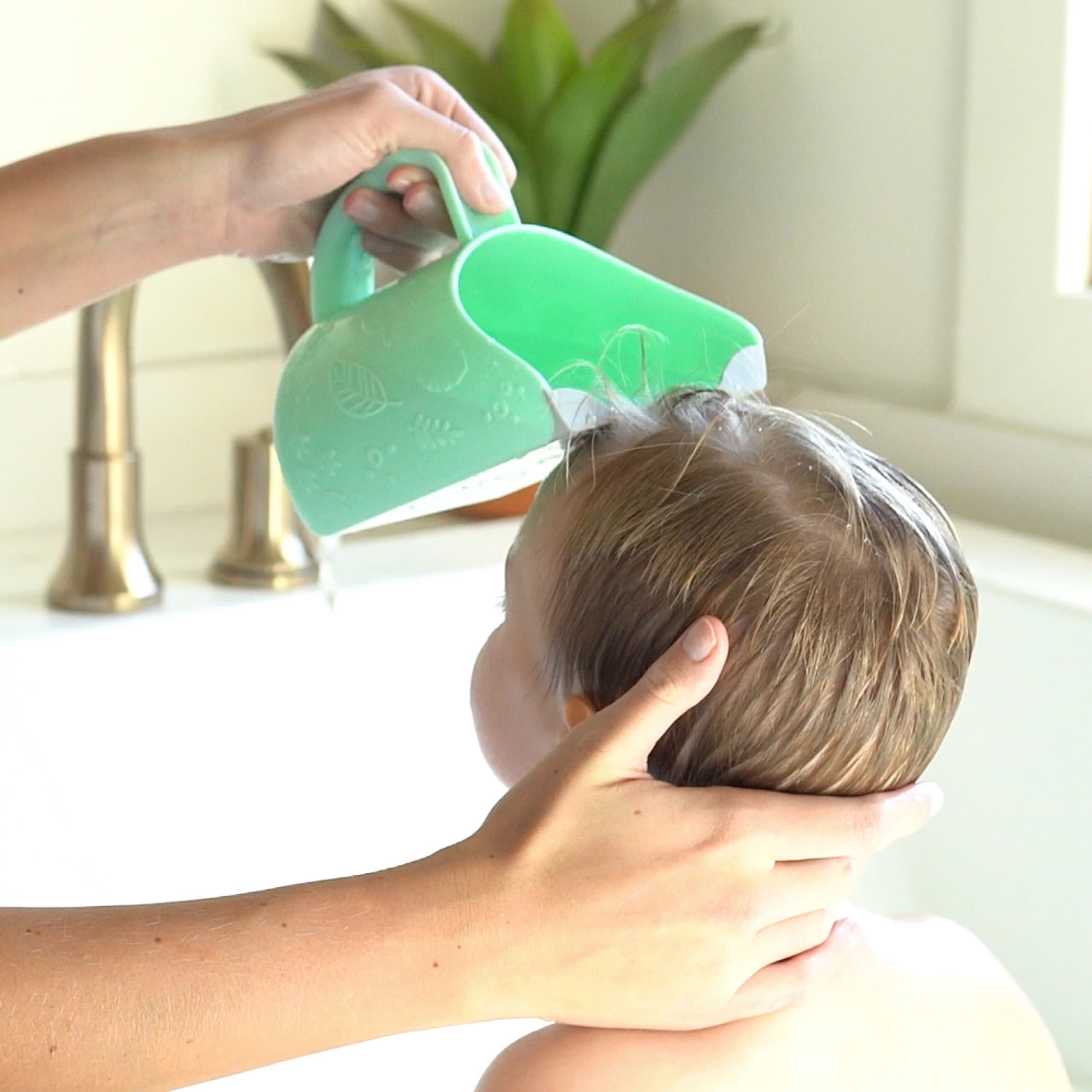 Viền cốc linh hoạt được thiết kế để hướng của dòng nước và xà phòng tránh khỏi mặt và tai bé