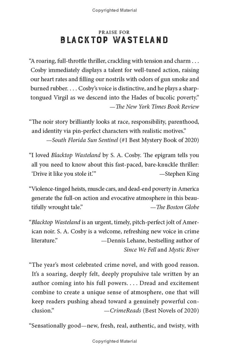 Like Ocean’s Eleven meets Drive, with a Southern noir twist, S. A. Cosby’s Blacktop Wasteland is a searing, operatic story of a man pushed to his limits by poverty, race, and his own former life of crime.