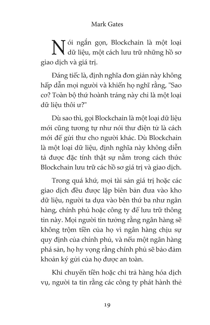 Thực chất, những bài viết cung cấp thông tin về Blockchain và tiền điện tử không thiếu trên các website hay mạng xã hội, nhưng lại chưa đủ tính bao quát và còn khó tiếp thu. Đó là lý do cuốn sách “BLOCKCHAIN: Bản chất của Blockchain, Bitcoin, tiền điện tử, hợp đồng thông minh và tương lai của tiền tệ” của Mark Gates ra đời. Gates cung cấp một bản tóm lược dễ hiểu nhất, cung cấp nền tảng thiết yếu cho những người mới bắt đầu và cả những ai muốn nghiên cứu sâu hơn về công nghệ Blockchain và tiền ảo. Đọc cuốn sách này, bạn sẽ hiểu được Blockchain dưới nhiều khía cạnh, trong đó không chỉ có những lời ngợi khen mà còn không thiếu các chỉ trích, bình luận trái chiều.