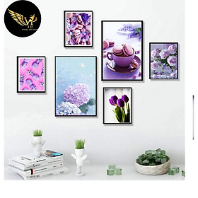 bộ 06 Tranh treo tường màu tím ngọt ngào, trang trí phòng khách, phòng ngủ, HÌNH HỌC- PHONG CÁCH TỐI GIẢN, NHẸ NHÀNG, SANG TRỌNG Tặng kèm khung và đinh ba chân treo tranh chuyên dụng PVP-TP229