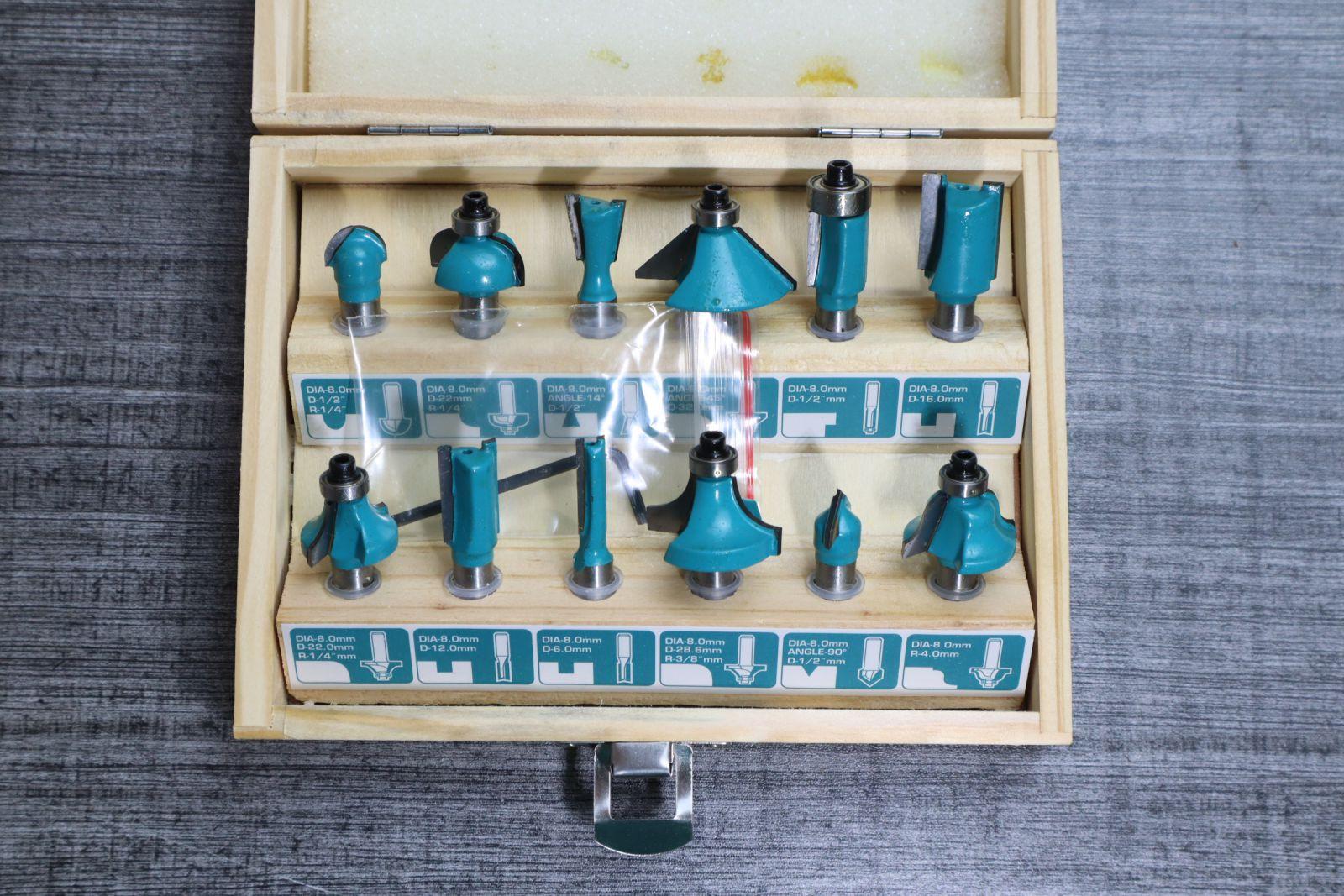 -Gồm 3 mũi thẳng 6mm, 12mm, 16mm, 1pcs 1/2"" 90°V-groove bit, 1pcs 1/2"" Dovetail bit